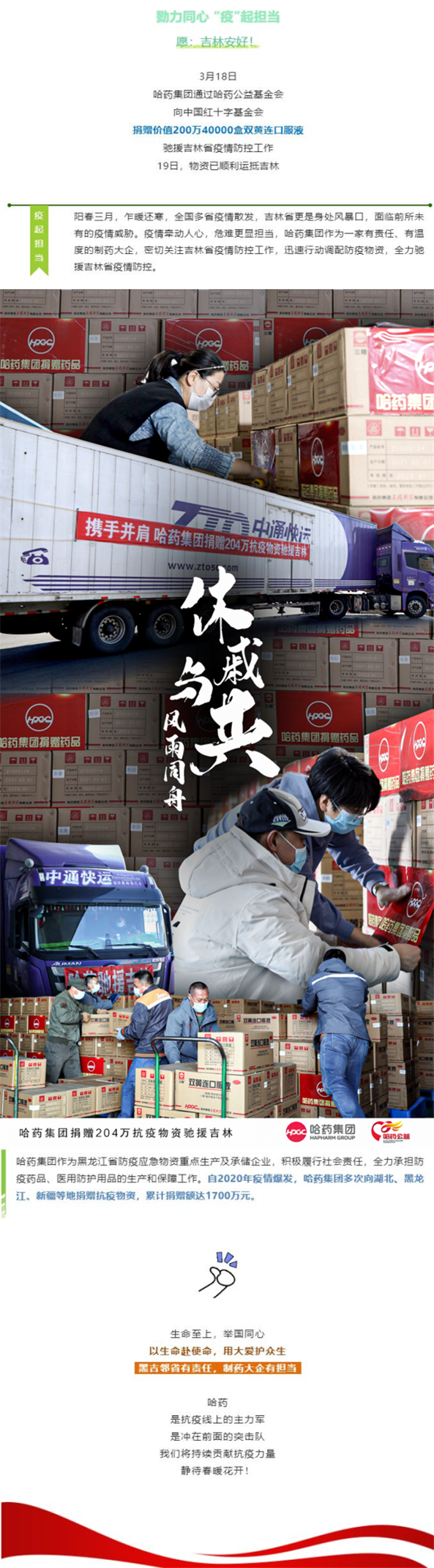 休戚与共,风雨同舟!sunbet申搏官方网站集团捐赠204万抗疫物资驰援吉林
